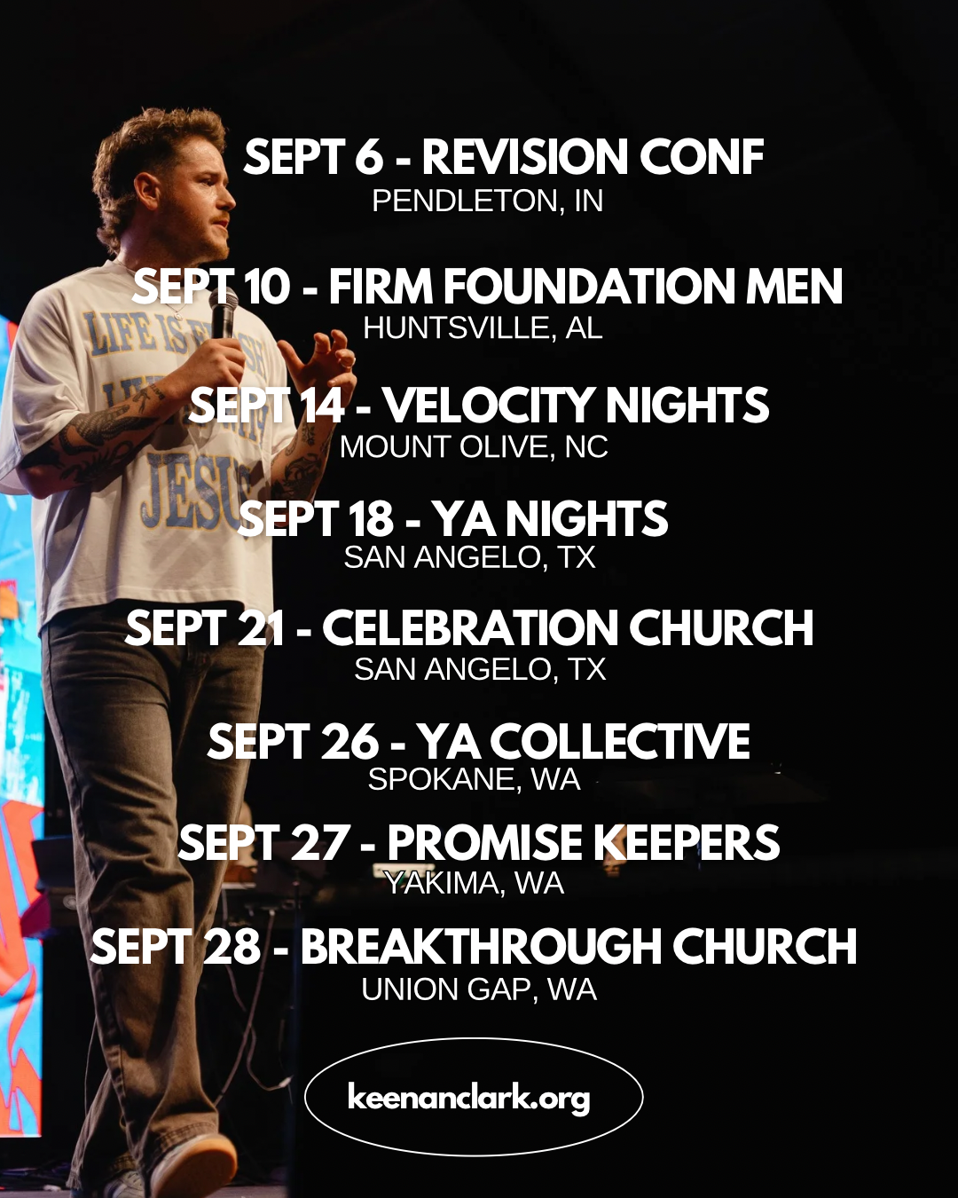 Keenan travels full-time preaching at churches, conferences, and events all around the country.